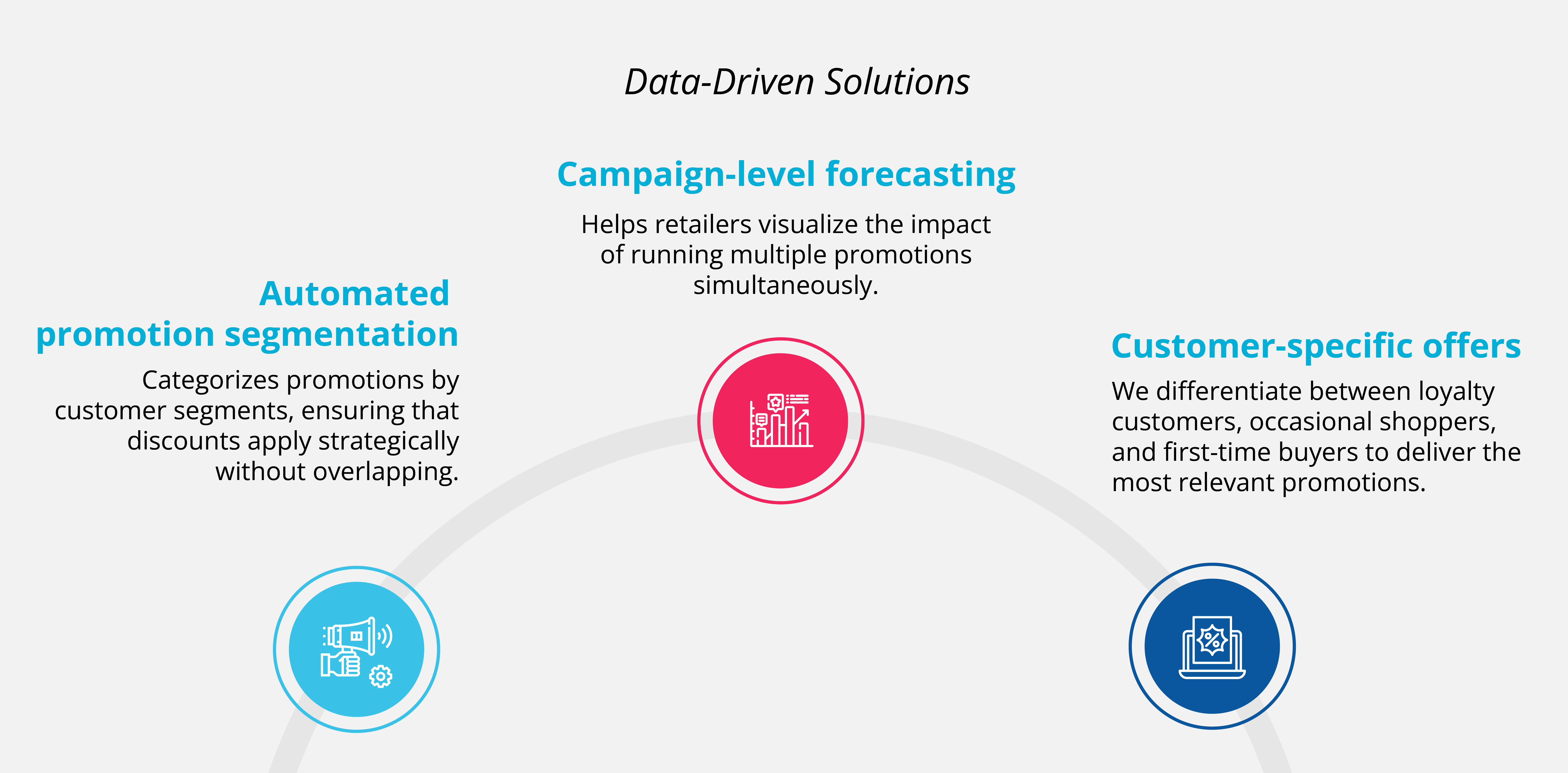 In addition to these challenges, retailers must navigate complex promotions, prevent profit loss from overlapping discounts, and leverage data effectively to drive sales. Static promotions that don’t adapt to market shifts can result in lost revenue, while the inability to measure true ROI leaves businesses guessing which strategies actually work. While you can take steps to improve, having the right partner ensures measurable success.